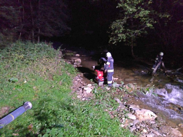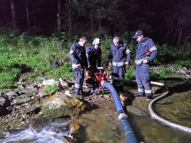 Hinter dem Stift Vorau, in der sog. "Brühl", wurde von den Kameraden eine Saugleitung hergestellt und dann mittels Tragkraftspritze "FOX" bzw. Heckeinbaupumpe des RLFA die Löschwasserförderung geübt.