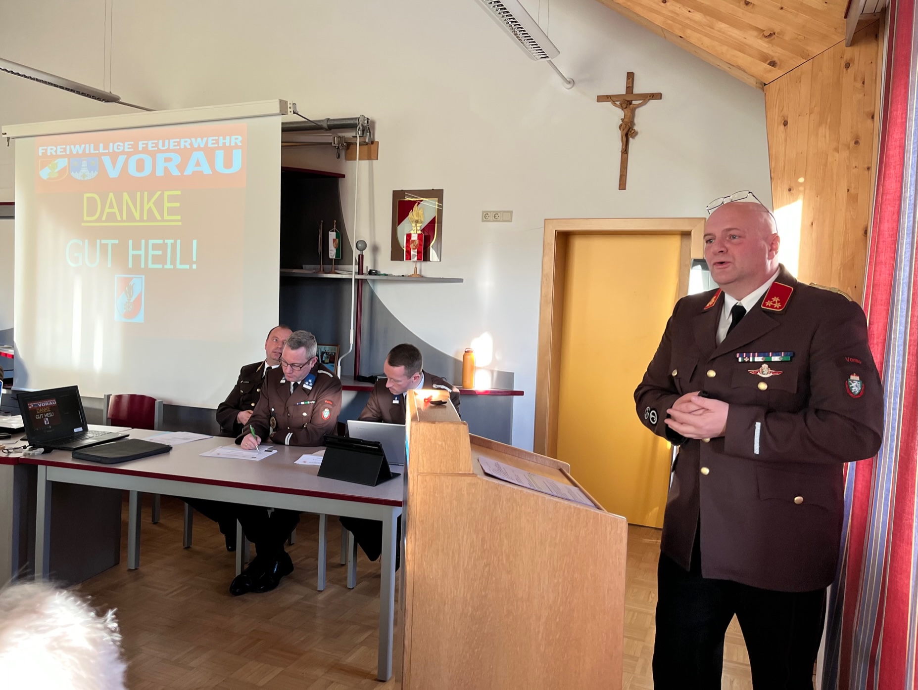 Im Anschluss lies unser Kommandant in seinem Bericht die Ereignisse des abgelaufenen Einsatzjahres Revue passieren. In Summe wurden 151 Einsätze mit insgesamt 2.935 Einsatzstunden von unserer Mannschaft geleistet. Für 74 Übungen wurden weiters 1.732 Stunden an Vorbereitung in Anspruch genommen. Für die Aufrechterhaltung unseres Betriebes wurden zusätzlich 1.370 Tätigkeiten (Wartungsarbeiten, Ausbildung, Verwaltung, etc. ) mit 7.873 Stunden aufgewendet. Insgesamt wurden damit im Jahr 2022 10.975 Stunden für unsere Gemeinde sowie unsere Bevölkerung geleistet.