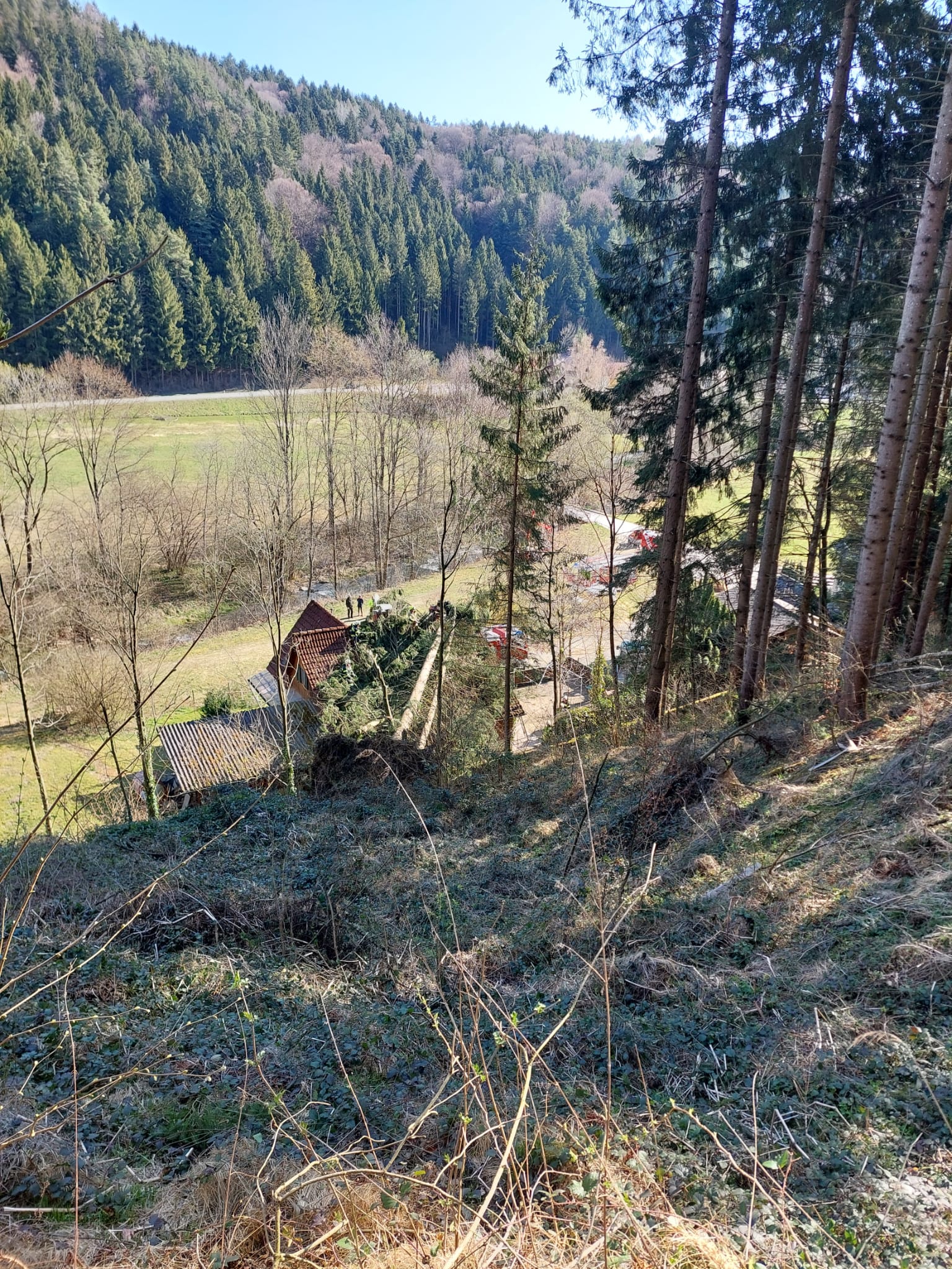 - Entfernen der beiden Bäume mittels Kran des SRF Hartberg