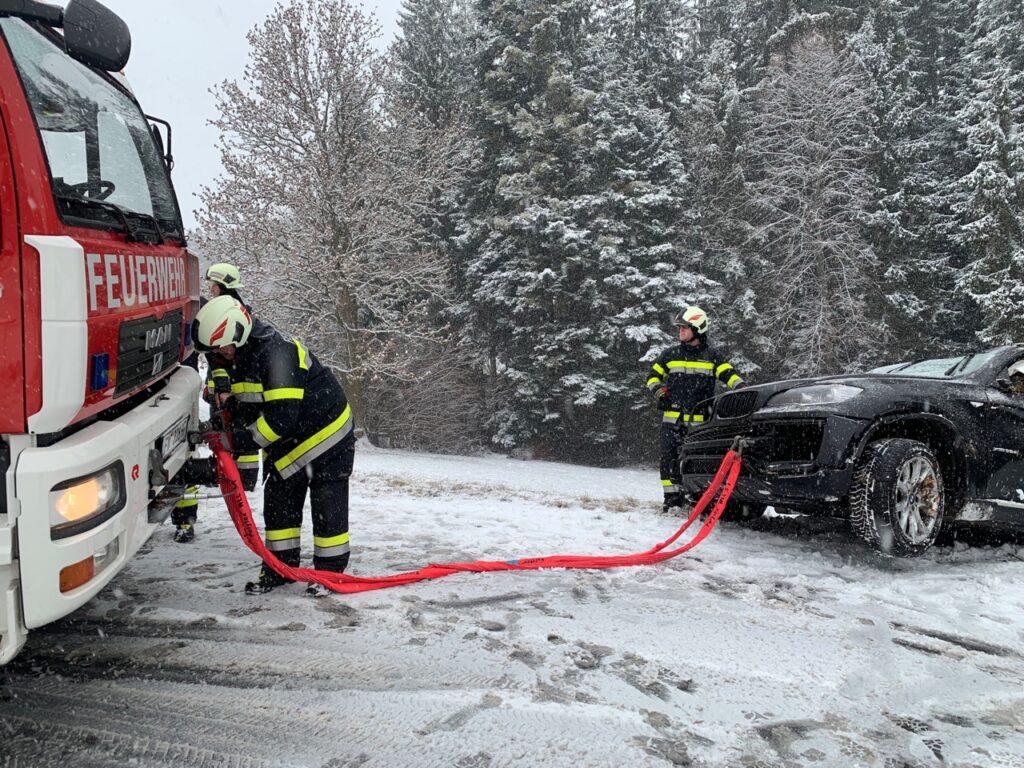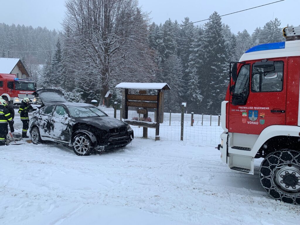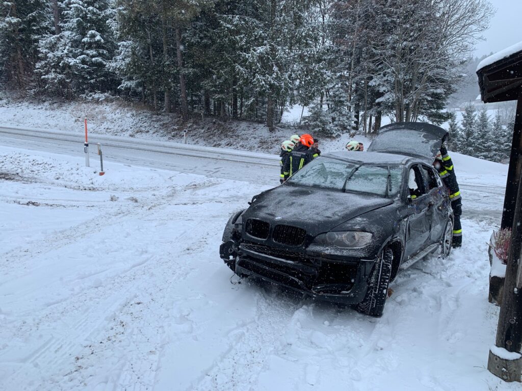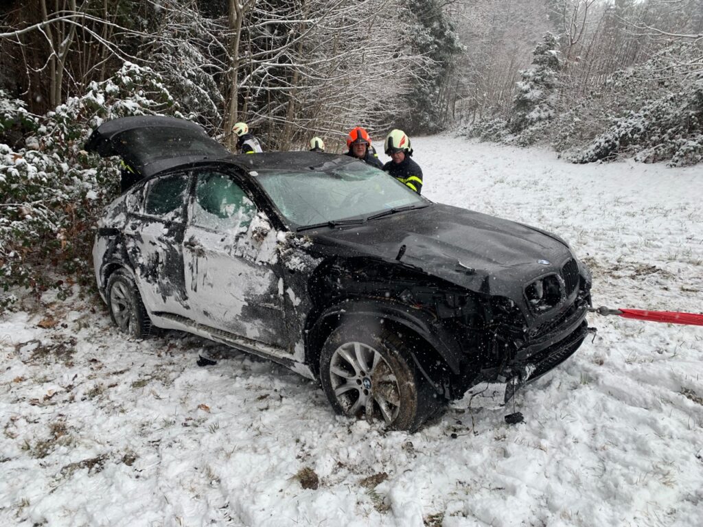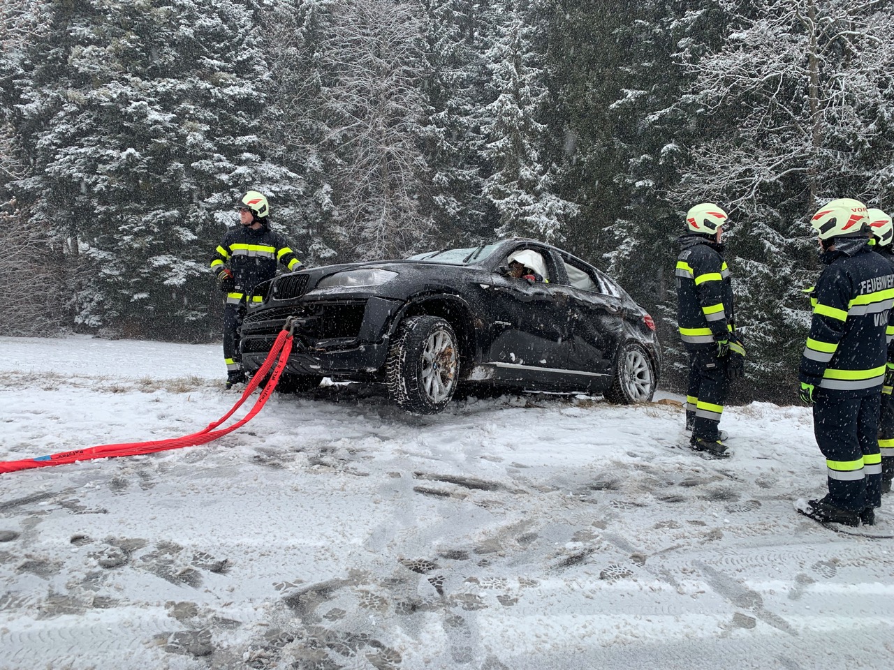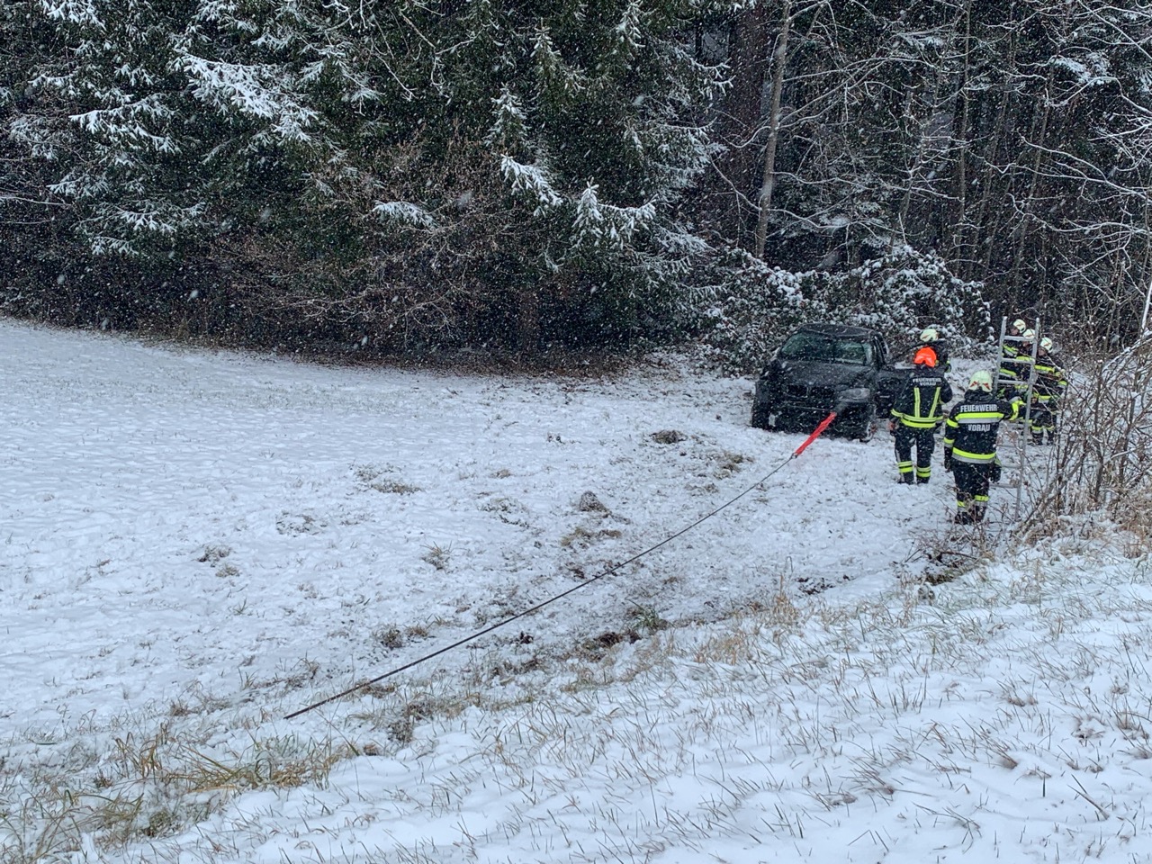 Ein PKW-Lenker war bei winterlichen Fahrverhältnissen von der Straße abgekommen und mit seinem Wagen über ein Böschung gestürzt. Das Fahrzeug war auf der Seite liegen geblieben, der Lenker hatte sich selbst befreien können.