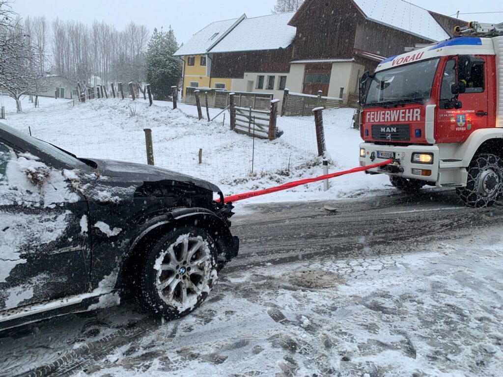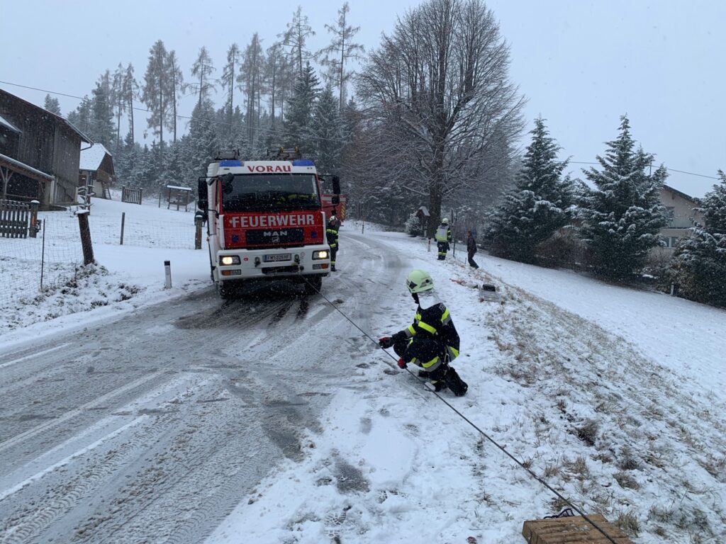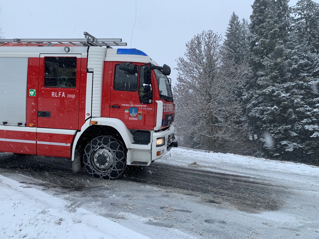 Am Mittwoch, dem 24.12.2025 wurde die Feuerwehr Vorau um 12:19 Uhr mit Stillem Alarm zu einem Fahrzeugbergung auf der L405 im Ortsteil Schachen, auf Höhe „Roster“ gerufen. Nach wenigen Minuten rückten wir mit RLFA, LKWA und MZFA mit 15 Einsatzkräften zum Einsatz aus.