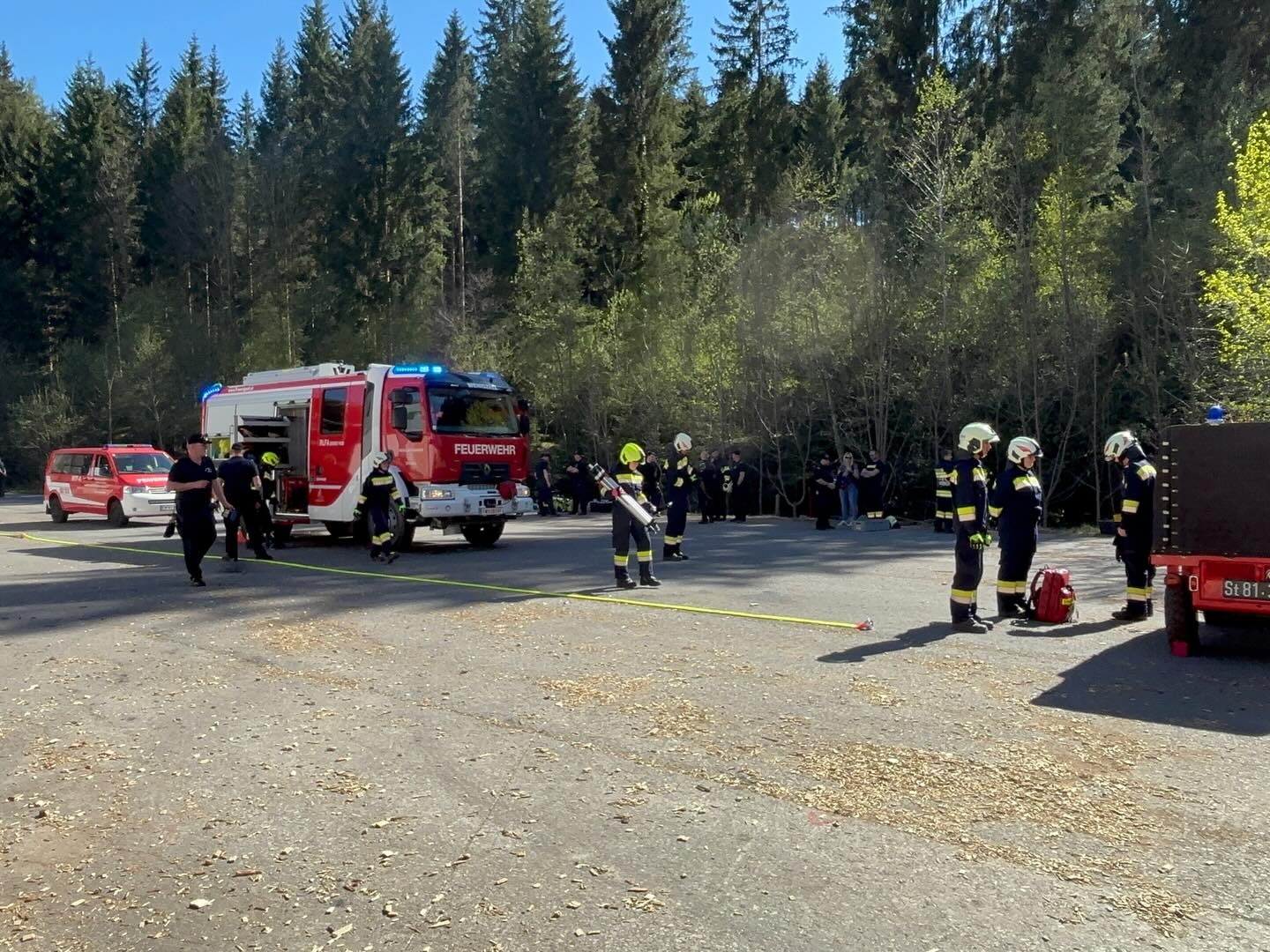 Nach einer intensiven Vorbereitung, welche Anfang März begonnen hatte und, bis auf eine kurze Unterbrechung zu Ostern, jedes Wochenende durchgeführt wurde, fand am Samstag schließlich die Abschlussprüfung statt. Diese war geteilt in einen Theorieteil und in die Praxis mit einem Löschangriff und einem technischen Einsatz.