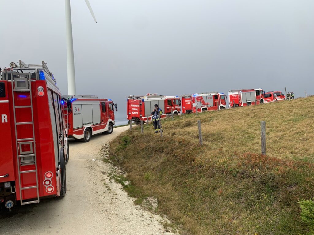 Übungsannahme war ein Waldbrand im Bereich „Windpark Steinriegel“ auf der Pretul Alpe.