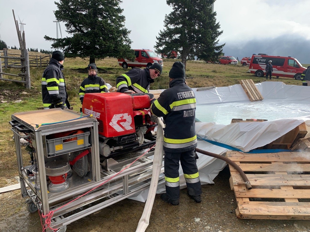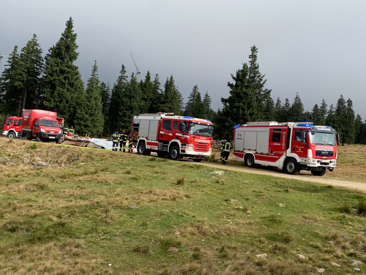 Übungsannahme war ein Waldbrand im Bereich „Windpark Steinriegel“ auf der Pretul Alpe.