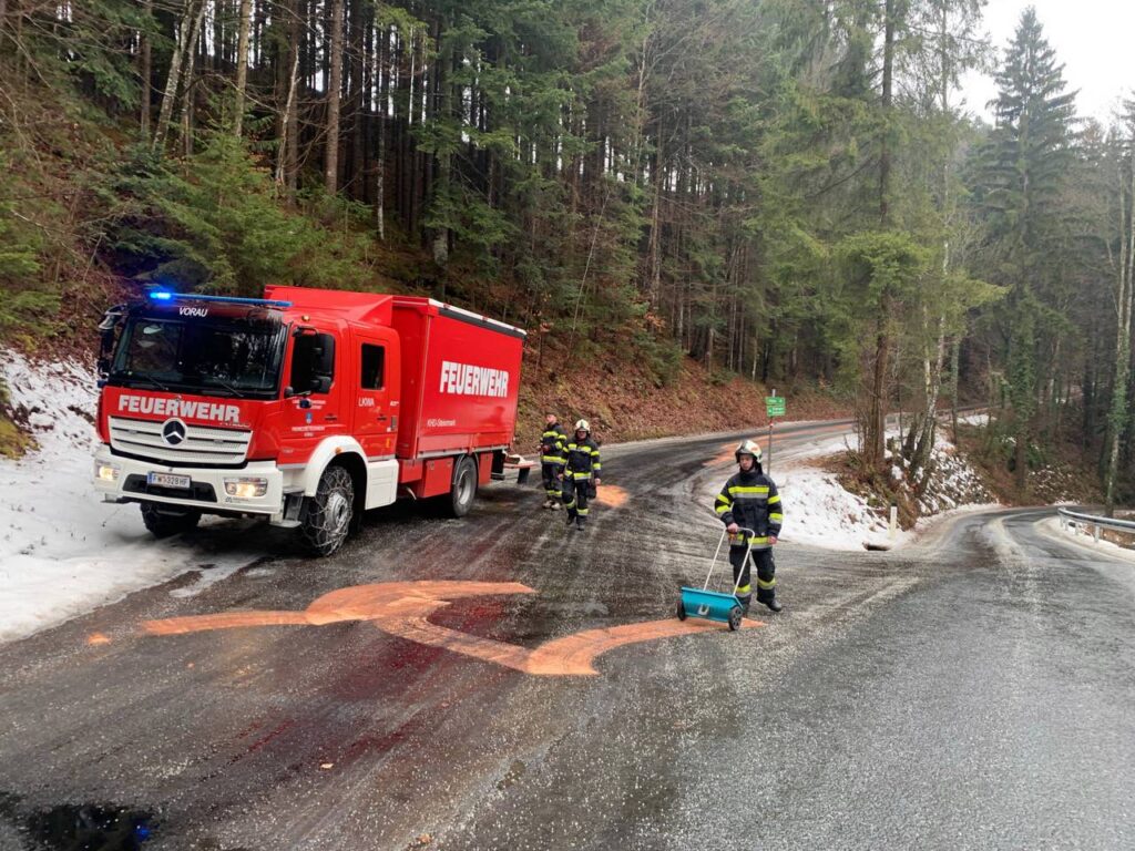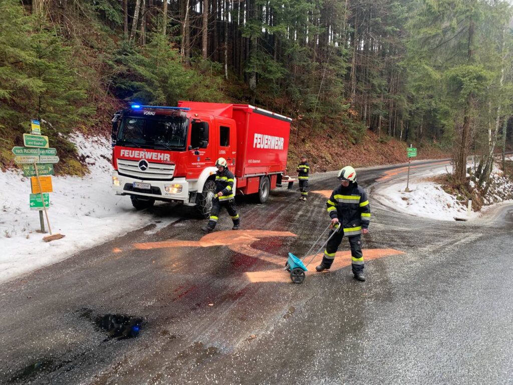 Am Donnerstag, dem 29.01.2026 wurde die Feuerwehr Vorau um 12:43 Uhr mit stillem Alarm zu einer Ölspur nach Puchegg, in den Steingraben, gerufen. Fünf Mann rückten nach wenigen Minuten mit dem LKWA zum Einsatz aus.