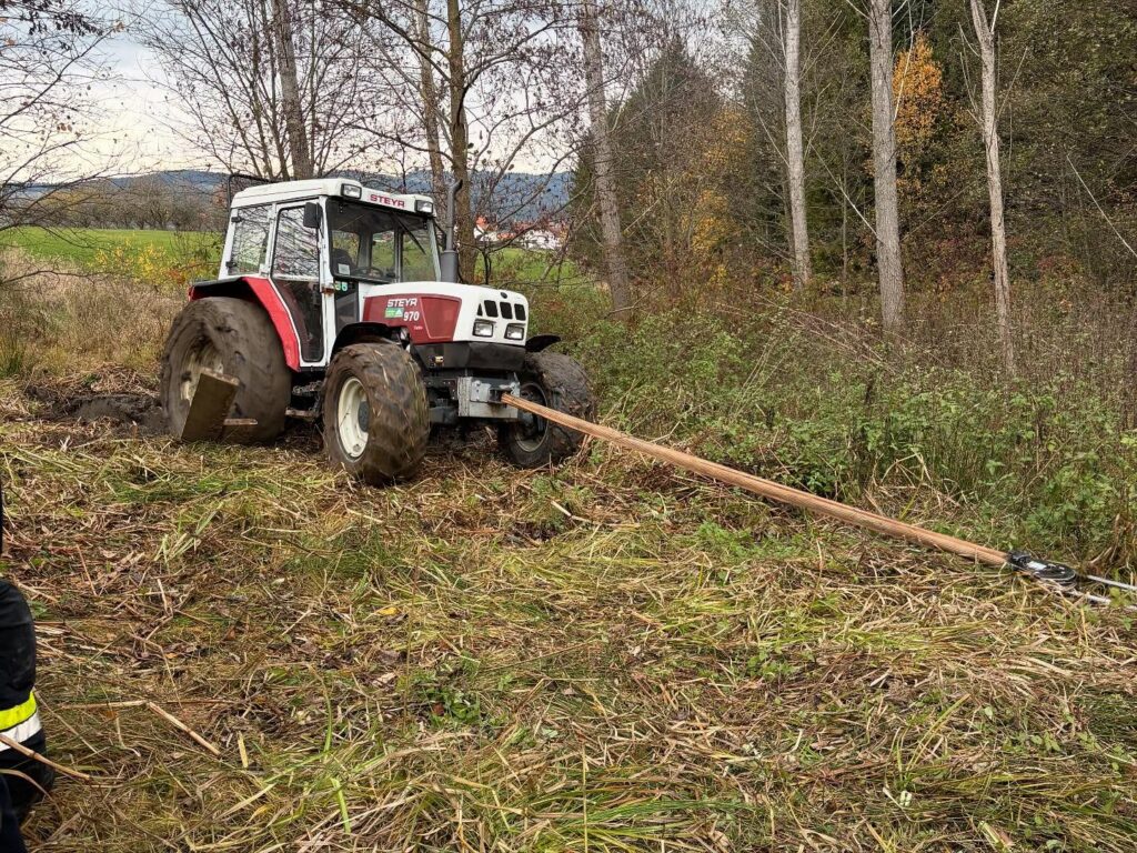 Am Samstag, dem 09.11.2025 wurden wir um 15:04 Uhr mit Stillem Alarm zu einer Traktorbergung in den Ortsteil Schachen alarmiert. Das RLFA und der LKWA rückten nach wenigen Minuten mit 13 Mann/Frau zum Einsatz aus.