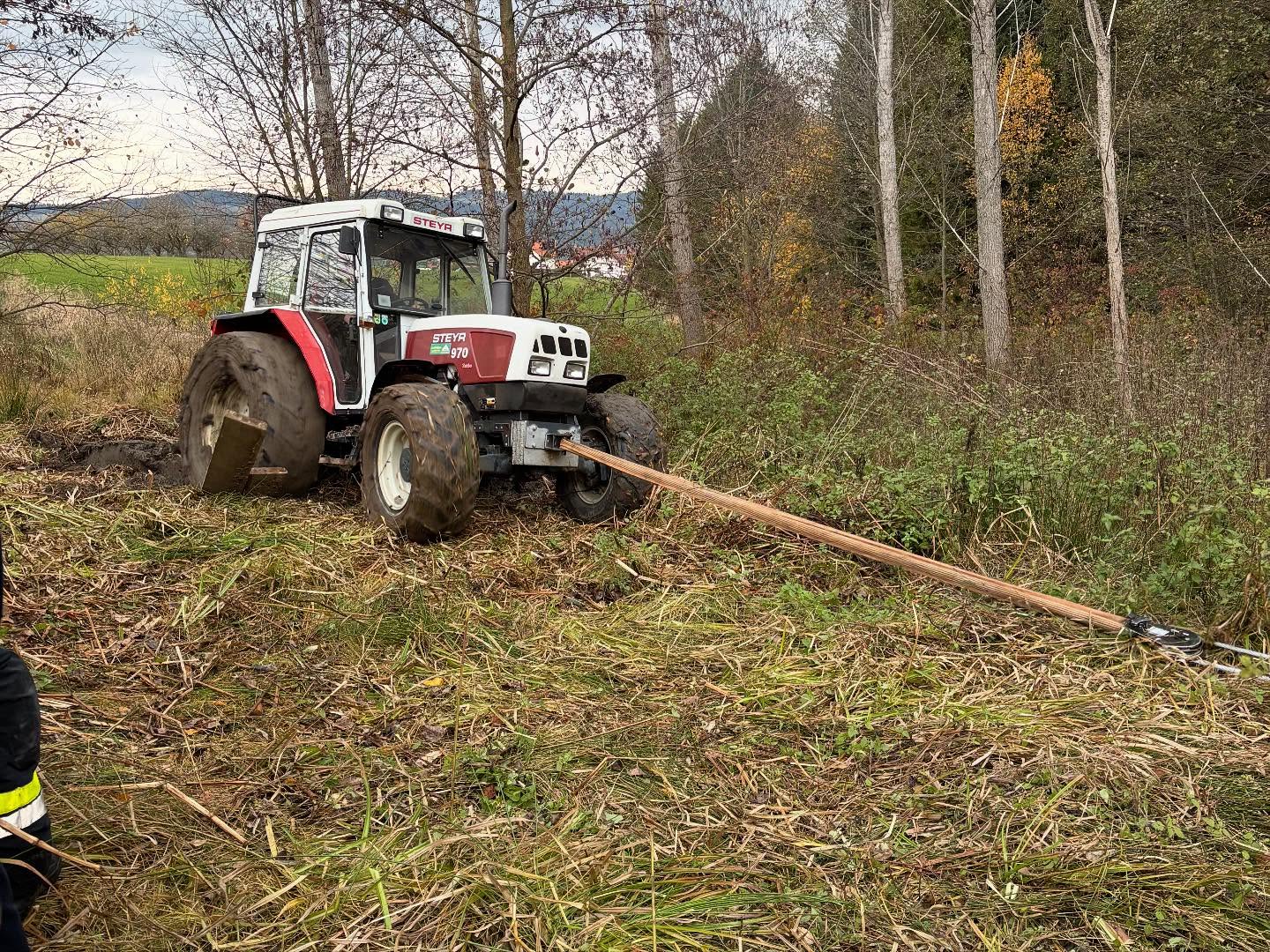 Am Samstag, dem 09.11.2025 wurden wir um 15:04 Uhr mit Stillem Alarm zu einer Traktorbergung in den Ortsteil Schachen alarmiert. Das RLFA und der LKWA rückten nach wenigen Minuten mit 13 Mann/Frau zum Einsatz aus.