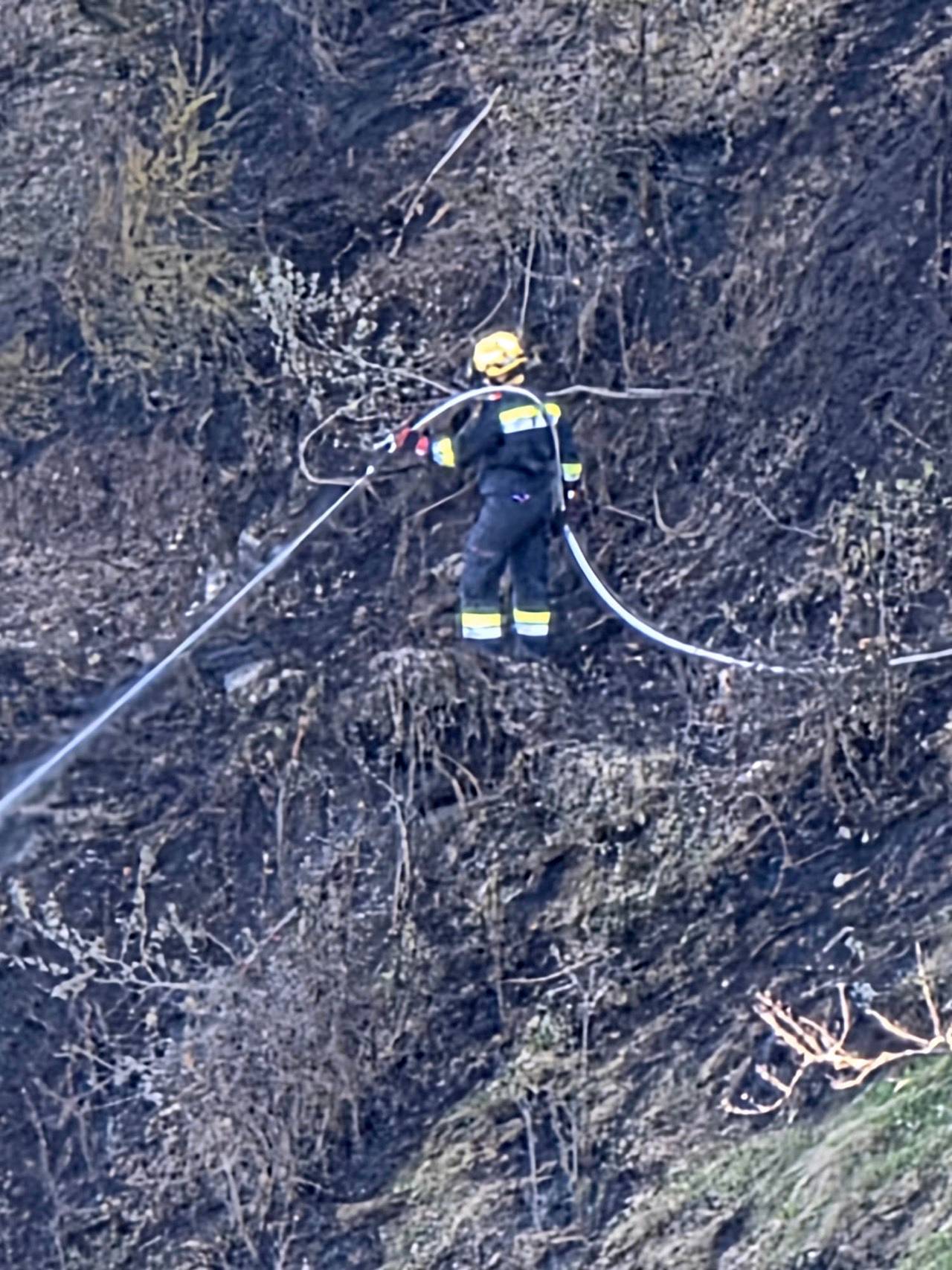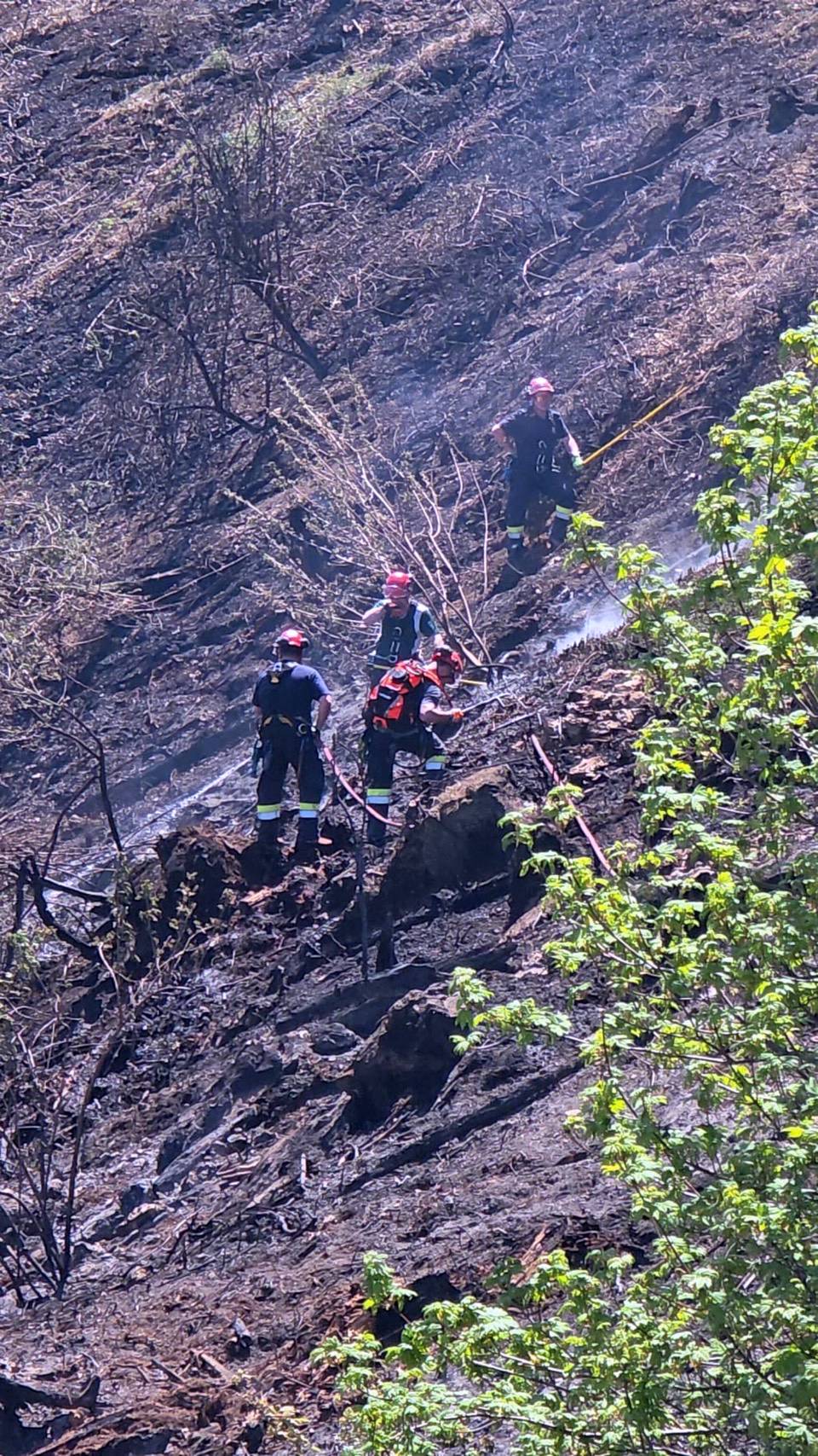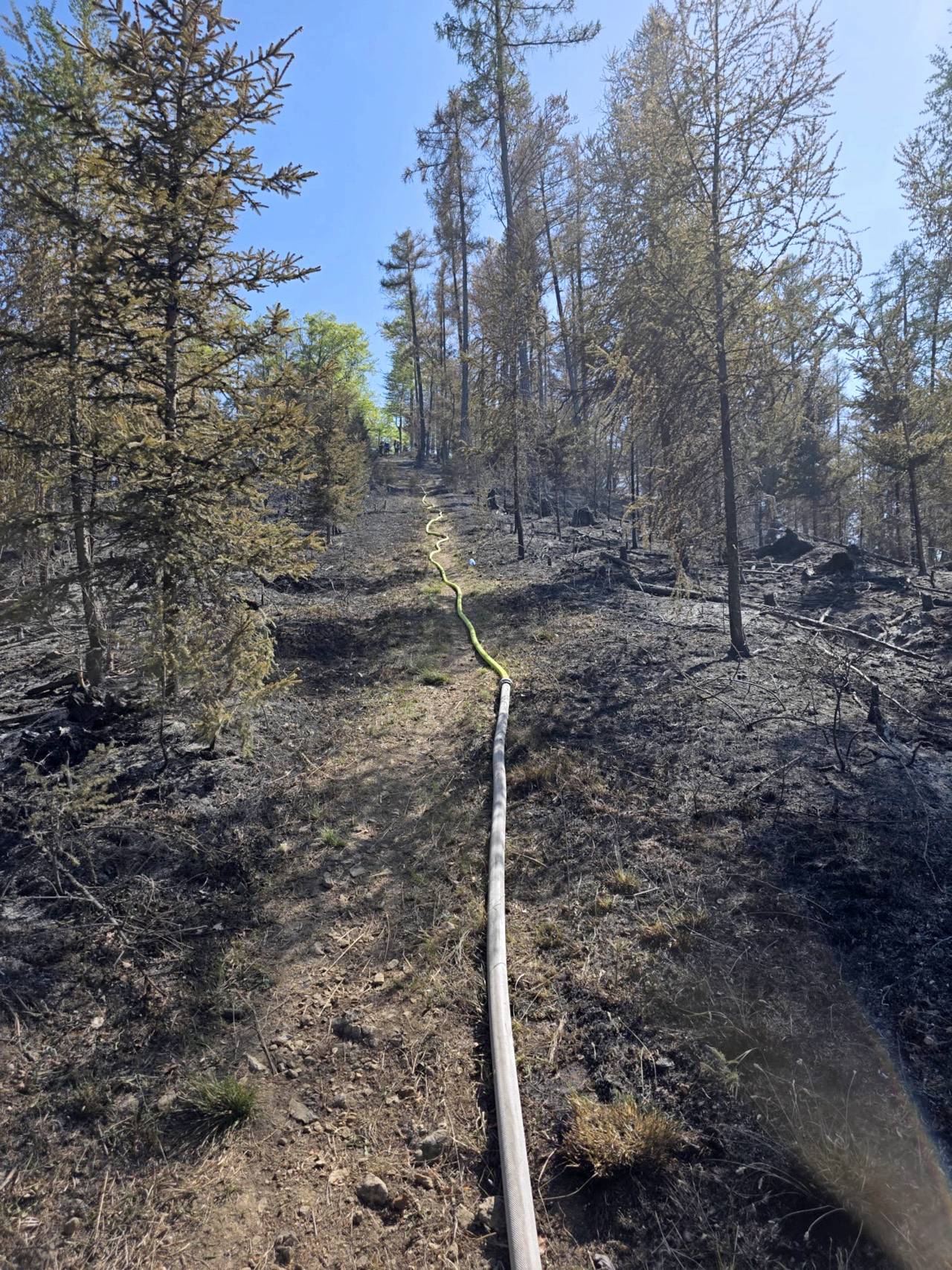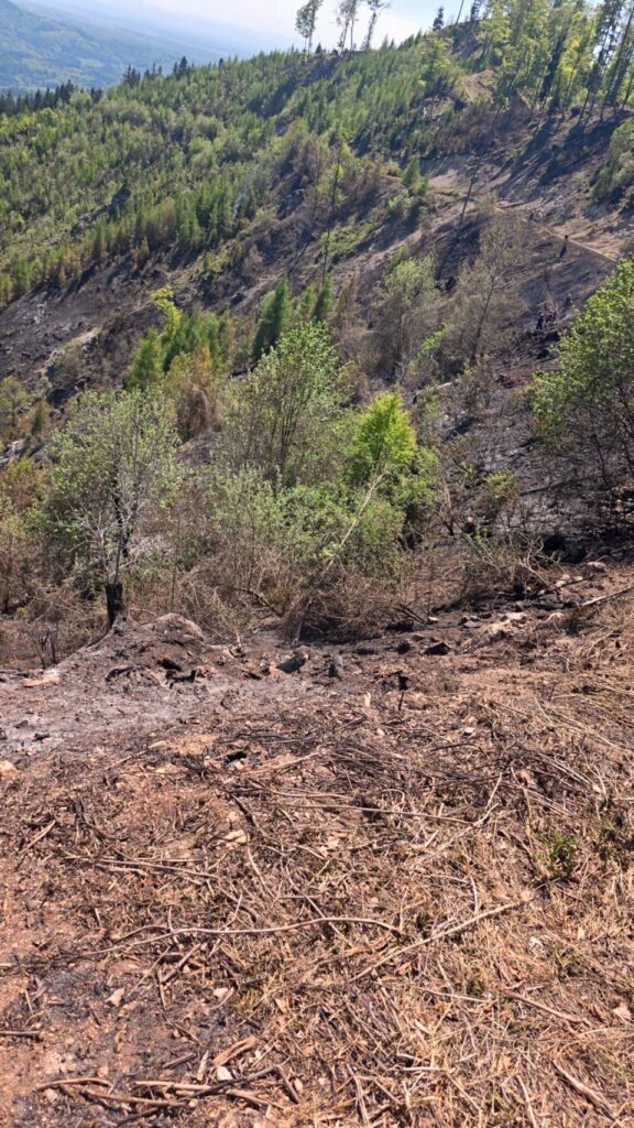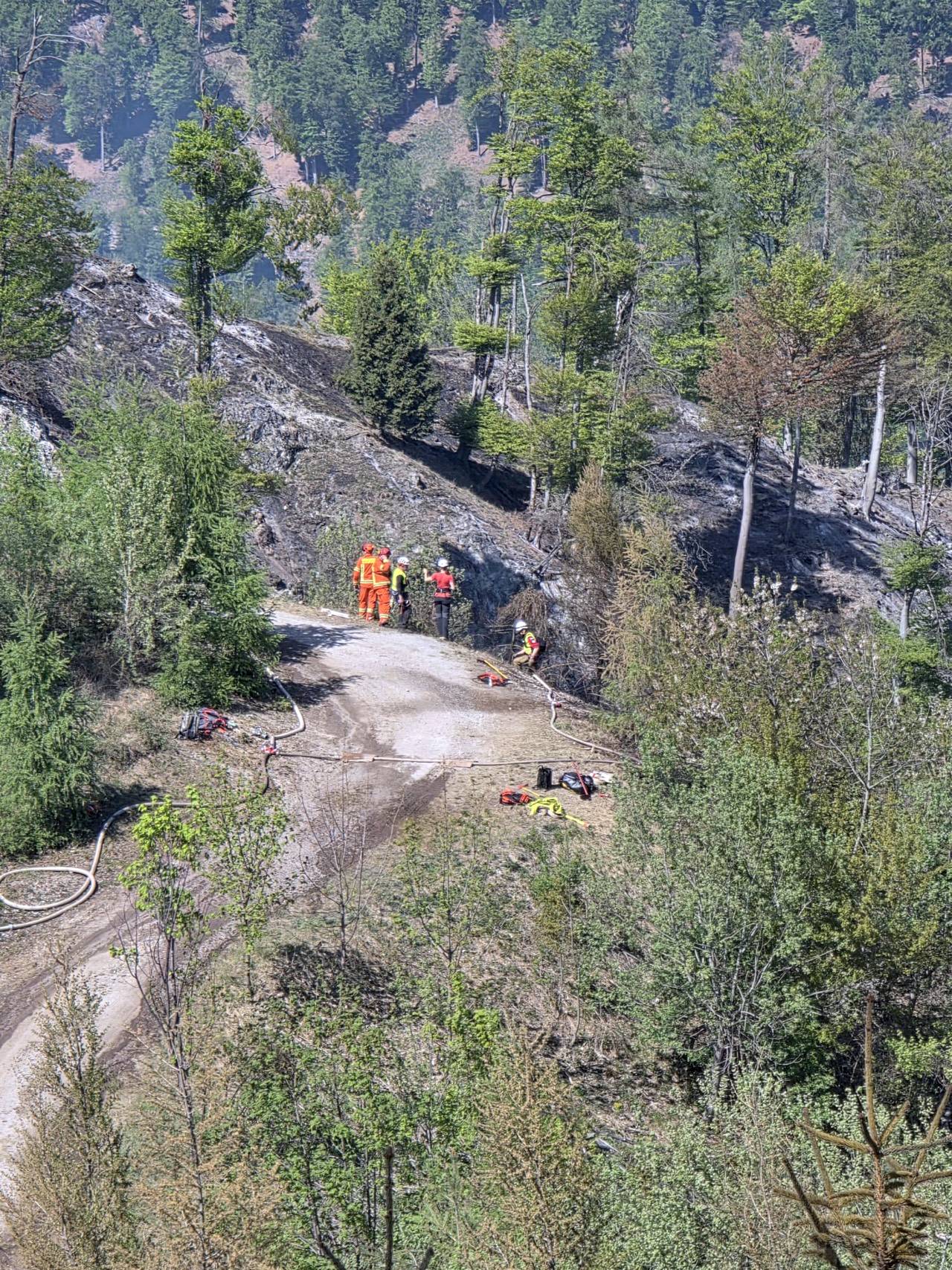 Im steilen Gelände führt unser Zug Nachlöscharbeiten mit Schanzwerkzeug und Löschrucksäcken, sowie auch aktive Brandbekämfpung mit Strahlrohren durch. Im Einsatz stehen insgesamt ca. 350 Einsatzkräfte sowie 8 Hubschrauber. Das betroffene Gebiet umfasst ca. 70 Hektar.