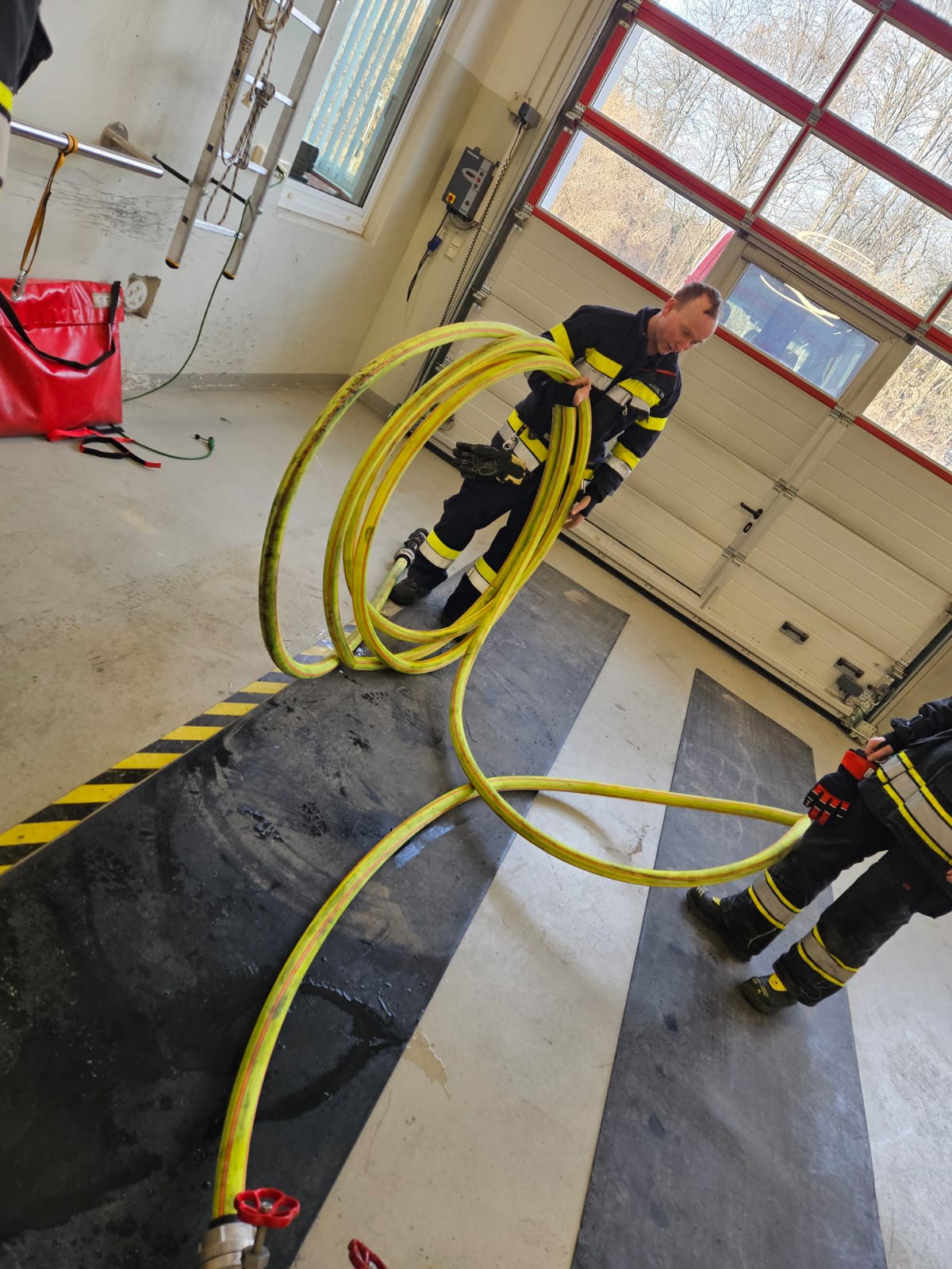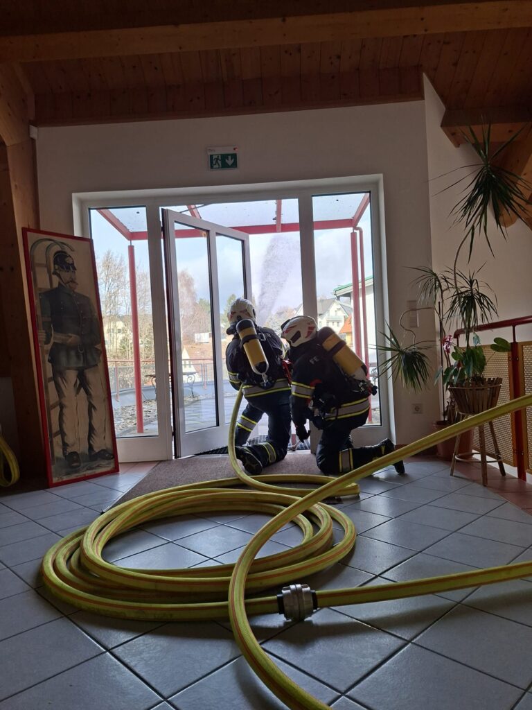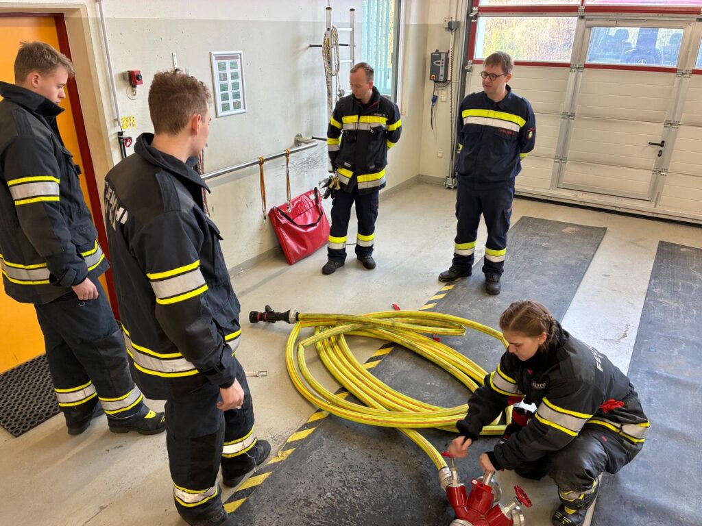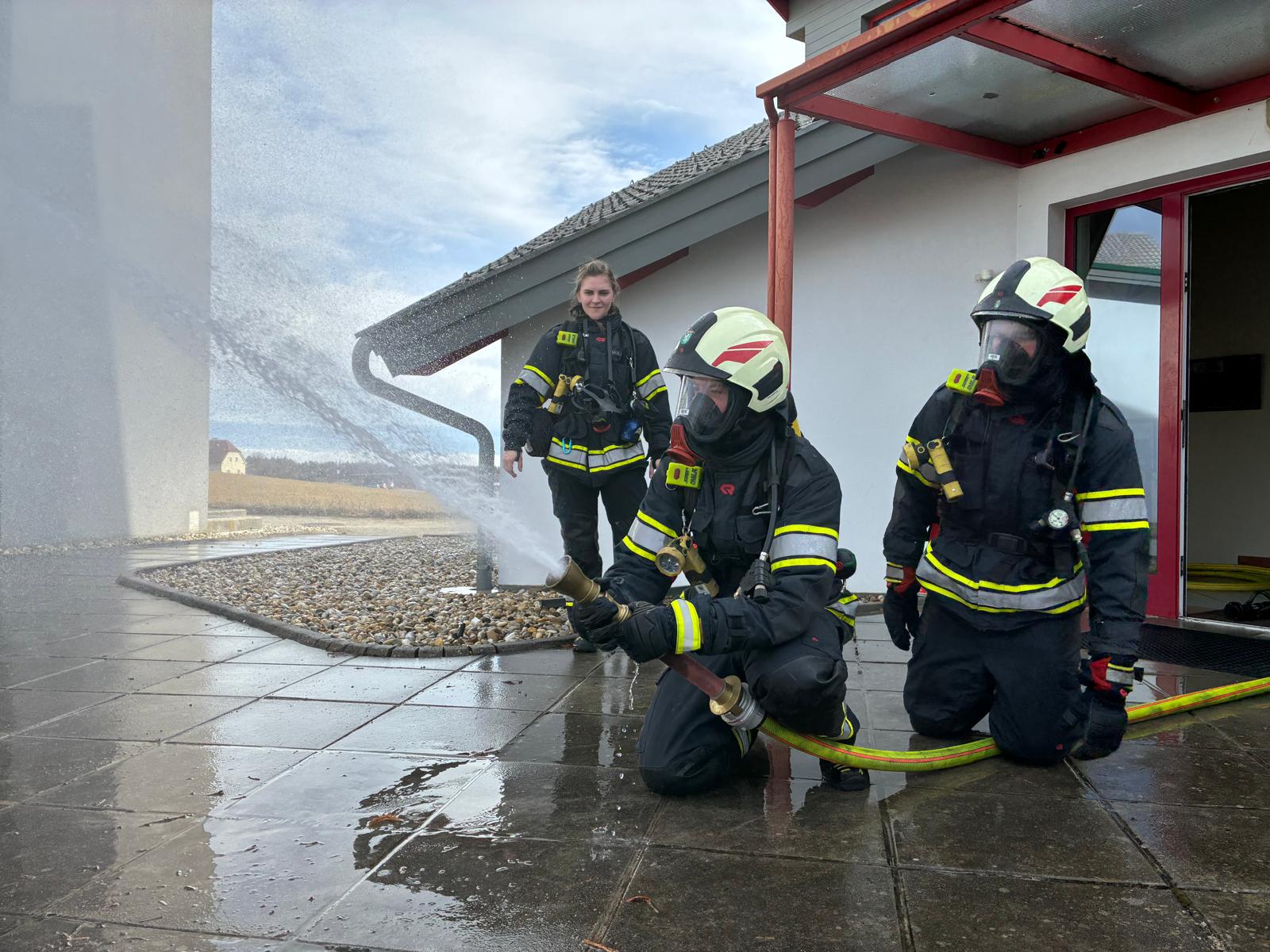 Im praktischen Teil wurde die Vornahme einer C-Leitung für den Standardinnenangriff intensiv geübt. Als Neuerung kam erstmals das Schlauchpaket zum Einsatz, das ein deutlich verbessertes Schlauchmanagement, ein schnelleres Vorgehen im Gebäude und eine Reduktion des „Schlauchsalates“ ermöglicht. Weitere Übungsschwerpunkte waren die Türöffnung und der kontrollierte Zugang zum Brandraum, der Einsatz von Rauchvorhang und Wärmebildkamera sowie die richtige Handhabung moderner Strahlrohre zur effektiven Brandbekämpfung bei gleichzeitiger Eigen- und Truppsicherheit.