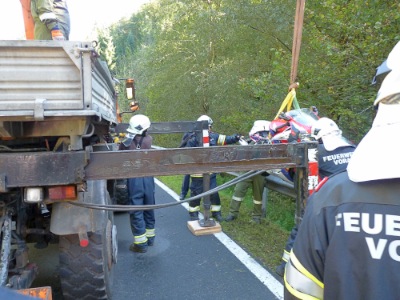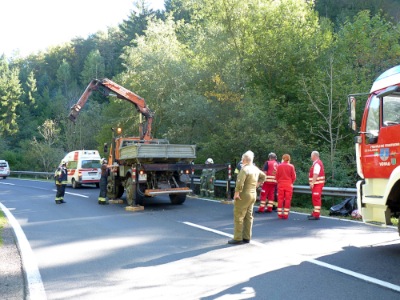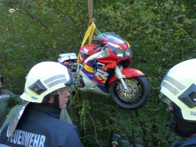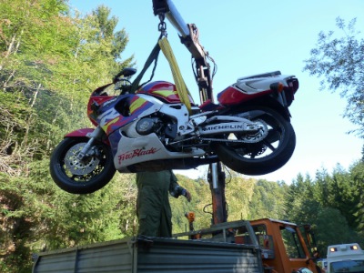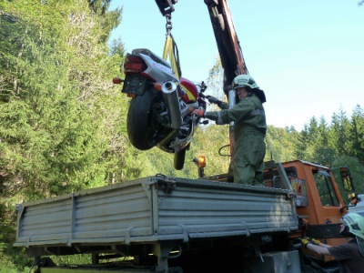 - Bergung der Unfall-Motorrades mittels Kranwagen